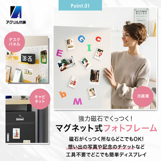 【冷蔵庫に飾れる】アクリル本舗 推し活 マグネット チェキ フレーム 4枚入り