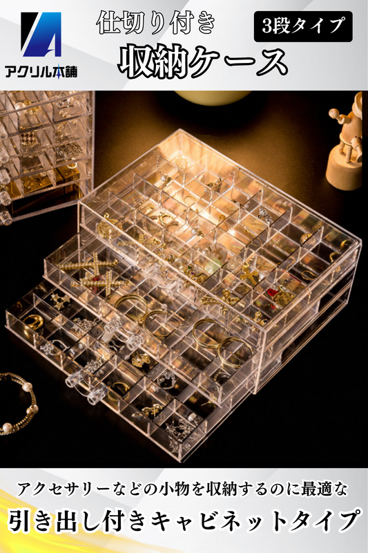 アクリル本舗 収納ケース アクセサリーケース 3段 72マス 5段 120マス ネイル ビーズケース 引き出し ビーズキャビネット 小物入れ パーツ 透明 クリア