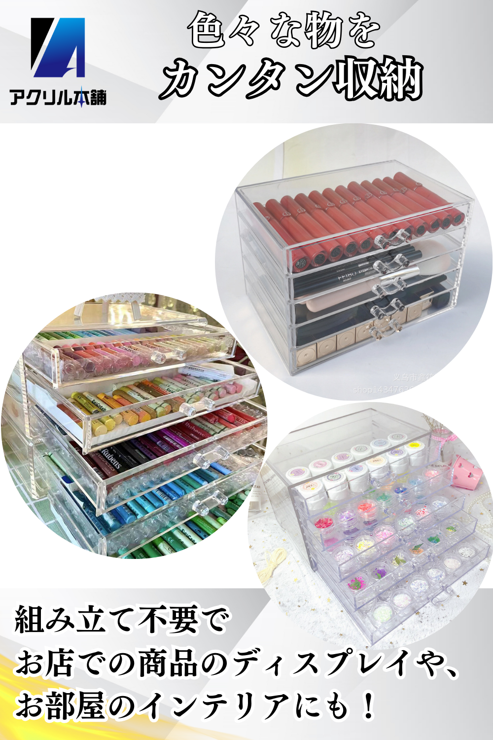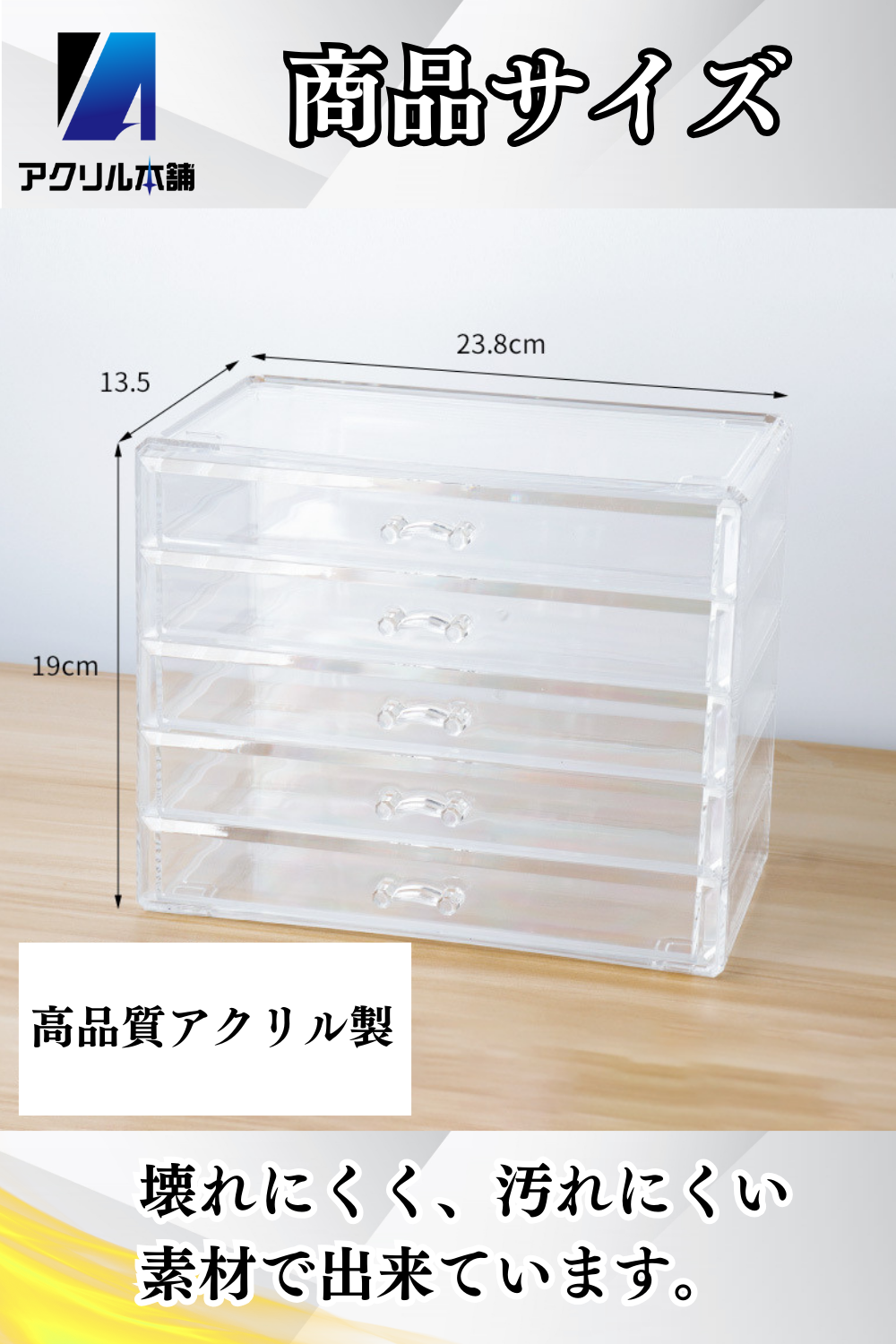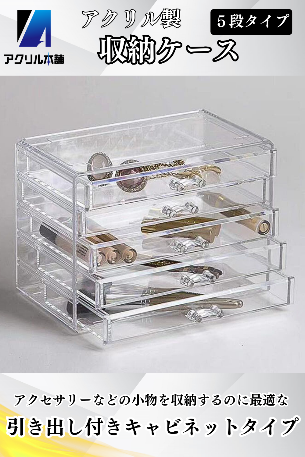 アクリル本舗 アクリルケース 収納ケース 3段 5段 引き出し アクセサリーケース 小物入れ 透明 アクリルボックス 仕切りなし