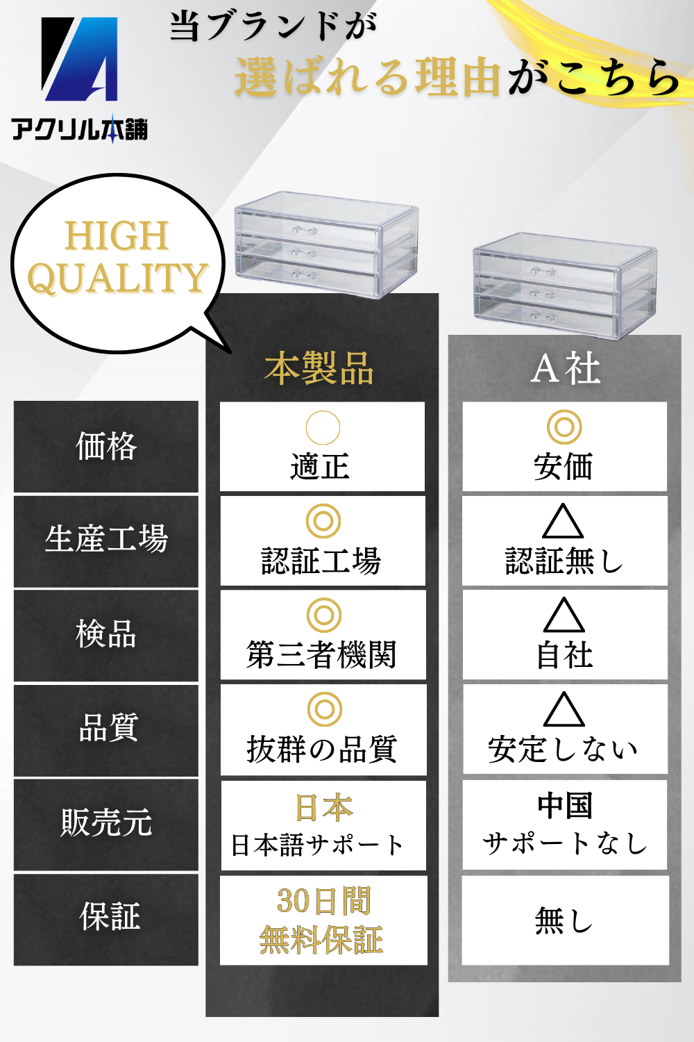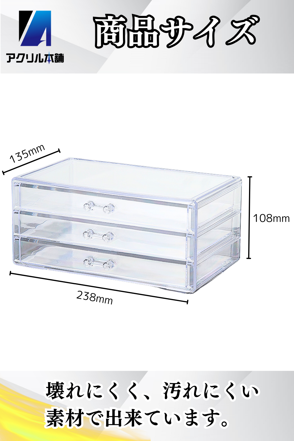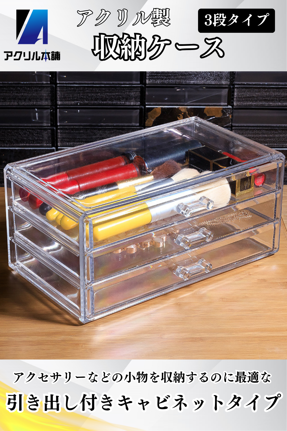 アクリル本舗 アクリルケース 収納ケース 3段 5段 引き出し アクセサリーケース 小物入れ 透明 アクリルボックス 仕切りなし