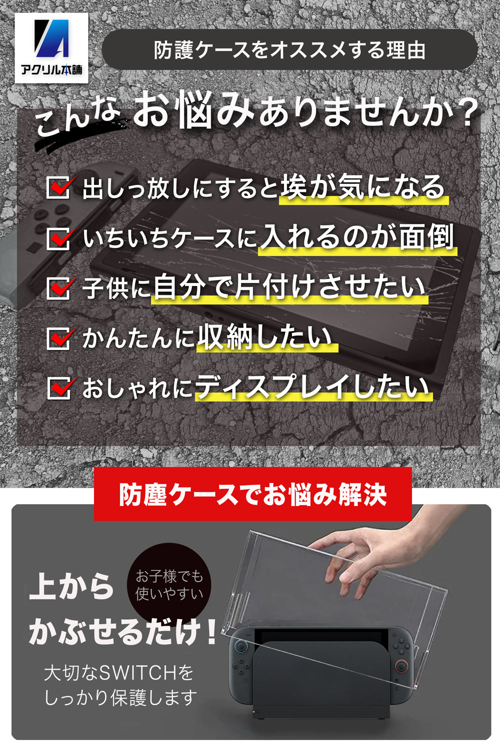 switch2 ドックカバー switchカバー switch 2 ケース スイッチ2ケース アクリル カバー ニンテンドースイッチ ドック用 アクリルケース 透明 クリア 全面保護 給電対応 耐衝撃 防塵 ほこり 埃よけ ホコリ防止 防水 傷防止 保管 収納 ディスプレイ インテリア オシャレ 日本ブランド